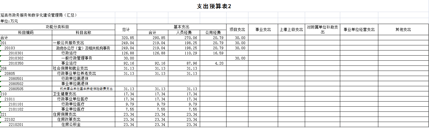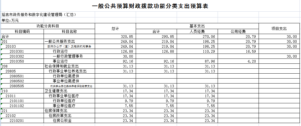 2020 年部门本级等2 家行政单位机关运行经费财政拨款预算 320.85万元,比 2019 年预算增加 13.66 万元,增长 4.26%, 主要原因是延吉市政务服和数字化建设管理局是新成立的预算单位,所以相应机关运行经费增加。