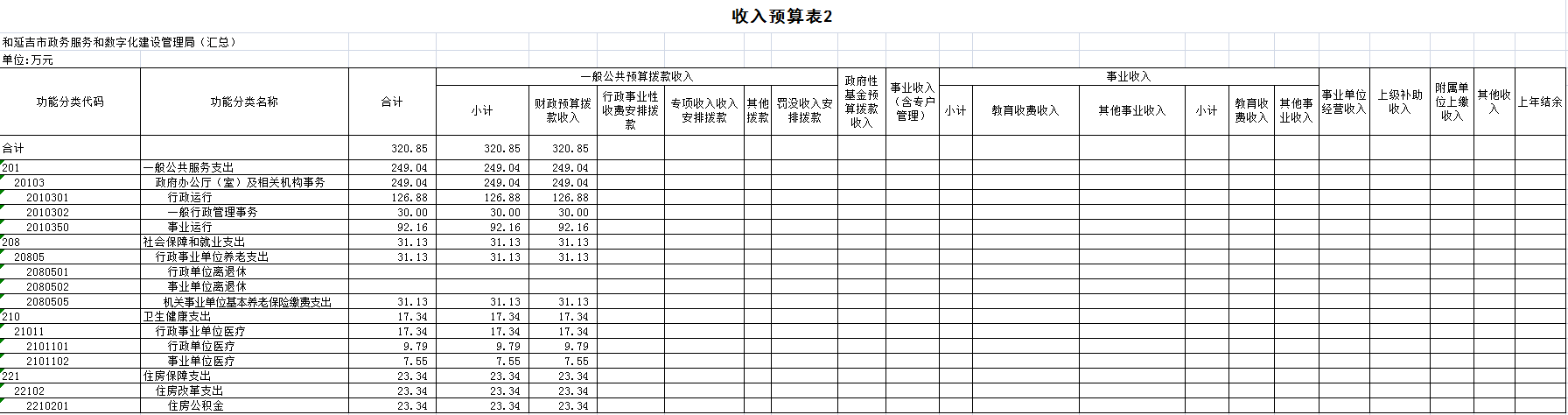 2020 年收入预算320.85万元,均为本年收入。其中:一 般公共预算拨款收入 320.85 万元,占 100%。