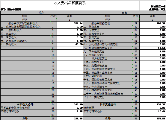 2019年度收246.40万元、支237.37万元。与2018年相比,收增加52.2万元、支增加40.43万元,增长26.87%和20.52%。主要原因:人员变动。