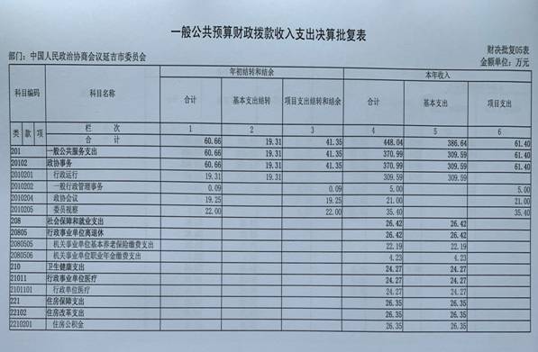 2019年度政协延吉市委员会部门决算
