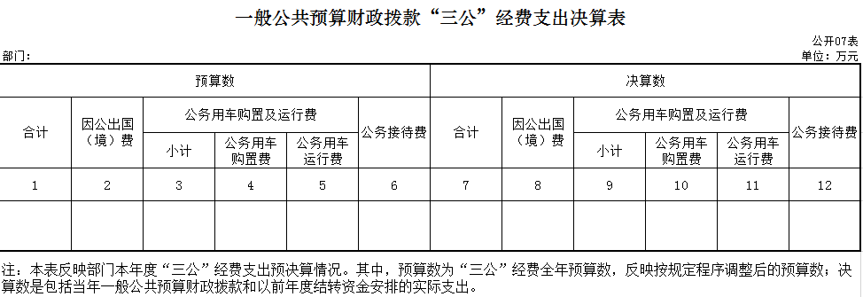 七、一般公共预算财政拨款“三公”经费支出决算表