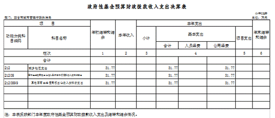 八、政府性基金预算财政拨款收入支出决算表